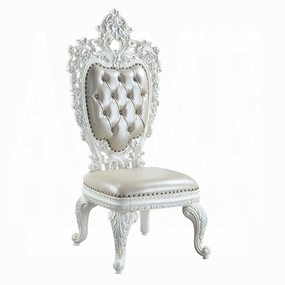 - Finish: Beige Synthetic Leather & Antique White Finish